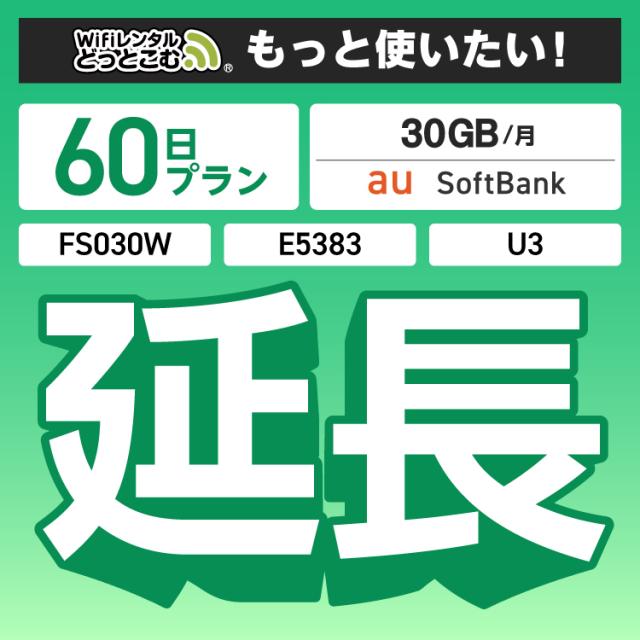 【延長専用】wifi レンタル FS030W E5383 30GBプラン 60日 ルーター wi-fi ポケットwifi 2ヵ月