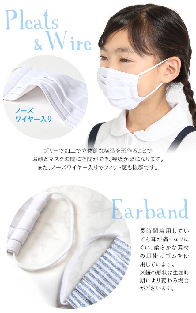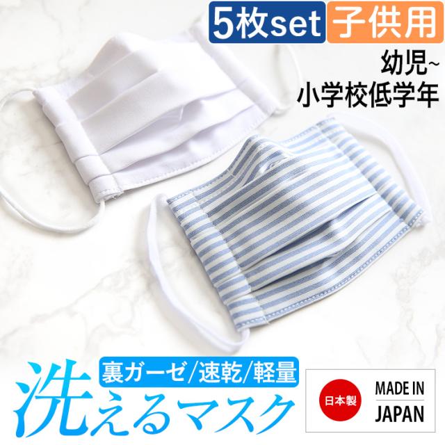 マスク 子供用 日本製 洗える 布製 布マスク ガーゼ 在庫あり 夏 冬 UV 通気性 軽量 プリーツ 子ども用 キッズ 女の子 男の子 かわいい ハンドメイド 大きめ 小さめ 水洗い可能 繰り返し使える 痛くない ホワイト ブルー 白 MA-S-02-5 5枚セット ゆうパケット対応