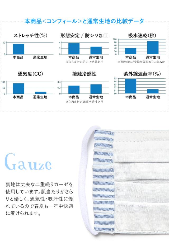 紳士用シャツにも使用される高級生地<コンフィール>を採用し、ハンドメイドで丁寧に縫製された安心・安全の日本製キッズマスクです。