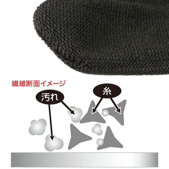 ●三角形の繊維が汚れを絡め取り、水だけでもしっかり汚れを落とすことができます。