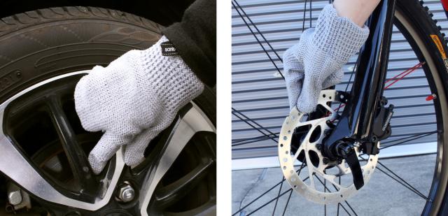 ブラシでは洗いずらいホイールの溝も、指先を使って隅々まで洗えます。細かいパーツの多い自転車のメンテナンスにもおすすめです。