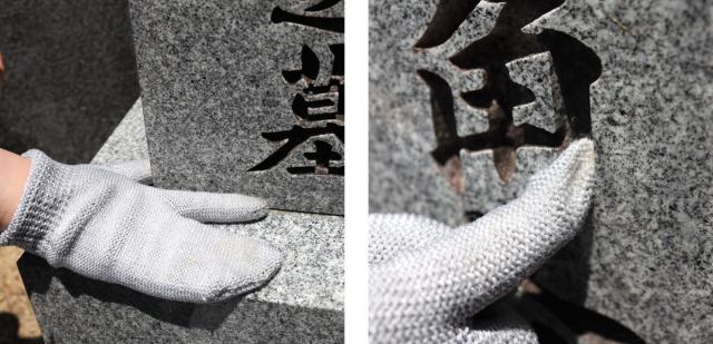 雨風でついてしまった土汚れも撫でるだけでキレイに落とせます。墓石に刻まれた文字の中も指先で丁寧にお掃除できます。お墓まわりをキレイにしてからお参りすれば、ご先祖様もきっとお喜びです。