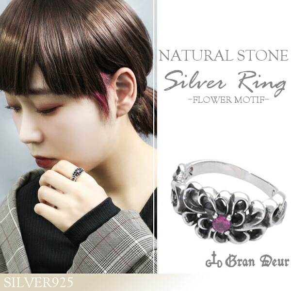 GRAN DEUR ガーネットフラワー シルバーリング 7〜13号 シルバーアクセサリー シルバー925 リング 指輪 グランデューワー リング