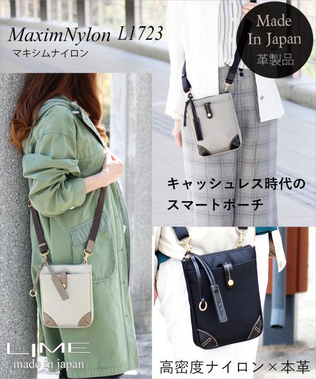 スマホショルダー ミニショルダーバッグ レディース 撥水 小さめ ミニバッグ 斜めがけ ななめ掛け ミニポシェット ポシェット ナイロン 本革 革 スマホポーチ ポーチ ミニポーチ 軽量 軽い バッグ ライム マキシムナイロン L1723 大人 メンズ ユニセックス スマホ 小さめ
