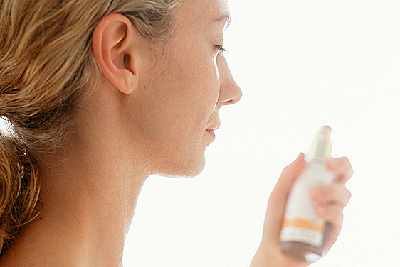 朝晩の洗顔後、お顔に向かってたっぷり吹きかけるか、手のひらにとって温め、顔をやさしく包みこむようにしてなじませ浸透させます。メイクの上からもお使いいただけます。 | ||