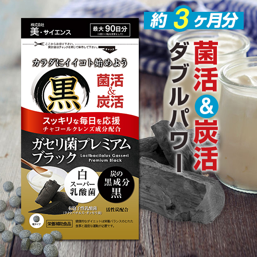 ガセリ菌プレミアム ブラック 90粒サプリ サプリメント 乳酸菌サプリ 乳酸菌サプリメント チャコール 善玉菌 乳酸菌 腸活 黒ガセリ 炭 おすすめ 売れ筋 気軽に 効果 まずは 1週間 お試し だけ ダイエット時の栄養補給 対策