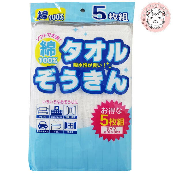 【数量限定】雑巾 タオルぞうきん 5枚組 約20×30cm | 掃除 そうじ 洗車 学校 学校用 保育園 幼稚園 小学校 中学校 書道 習字