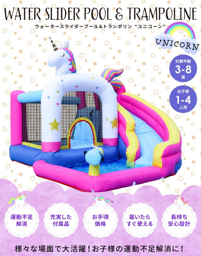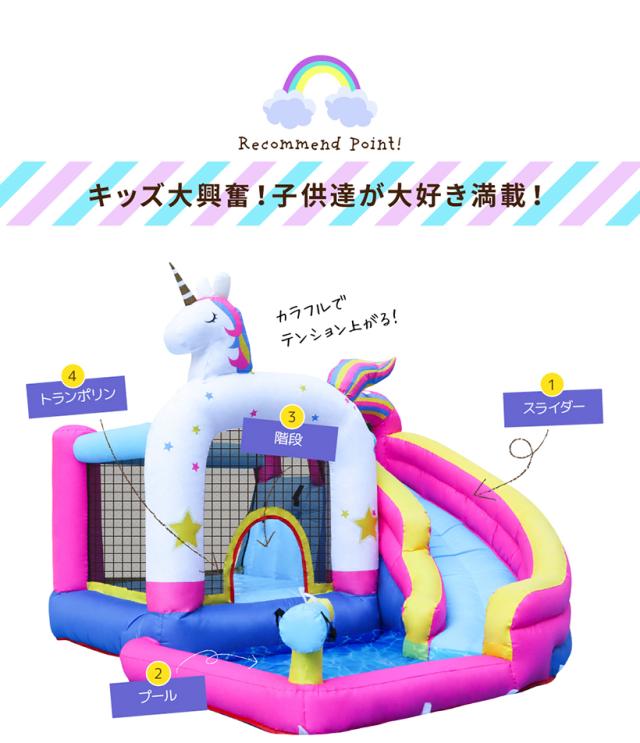HO!!PS エアー遊具 ユニコーン トランポリン すべり台 ビニールプール 大型プール