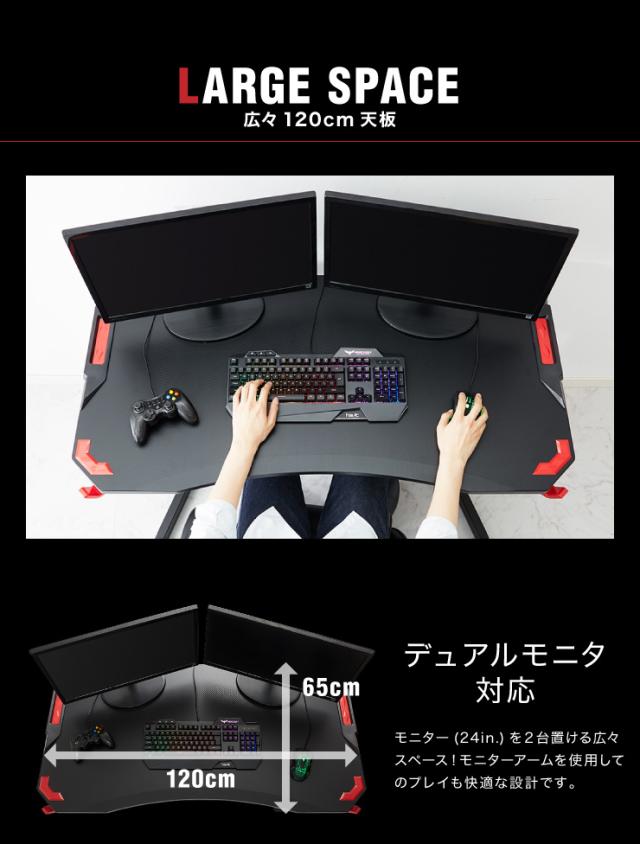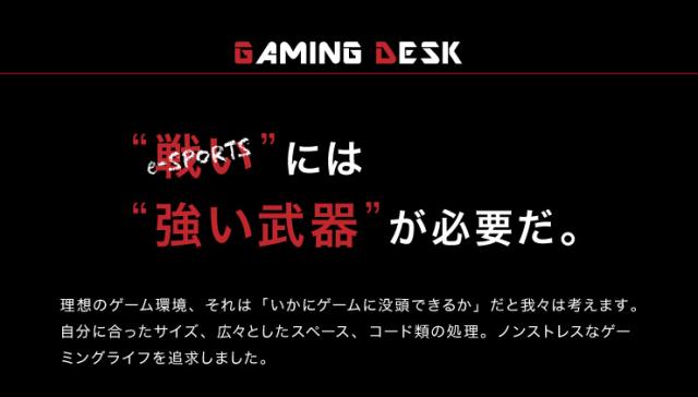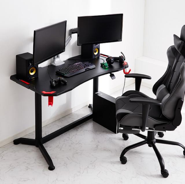 ゲーム用デスクとしても通常デスクワークも可能なシンプルデザイン。