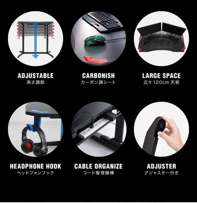 ガス圧昇降式ゲーミングデスク 幅120cm ハイタイプ ゲーミングデスク ゲームデスク 昇降式 デスク スタンディングデスク(代引不可)【送料