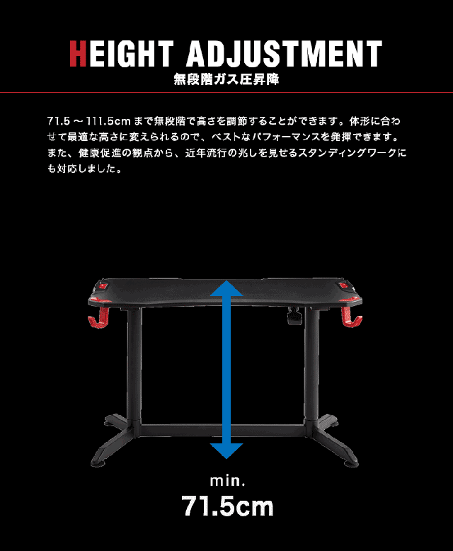 ガス圧昇降式ゲーミングデスク ミドルタイプ