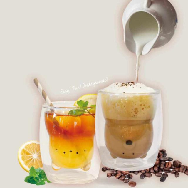 二重構造のグラスになっており、ドリンクを注ぐと動物のシルエットが浮かび上がるアニマルグラスです。容量270mlで、コーヒーブレイクやティータイムにピッタリです。