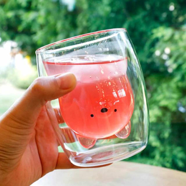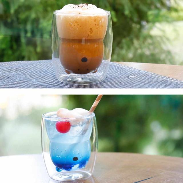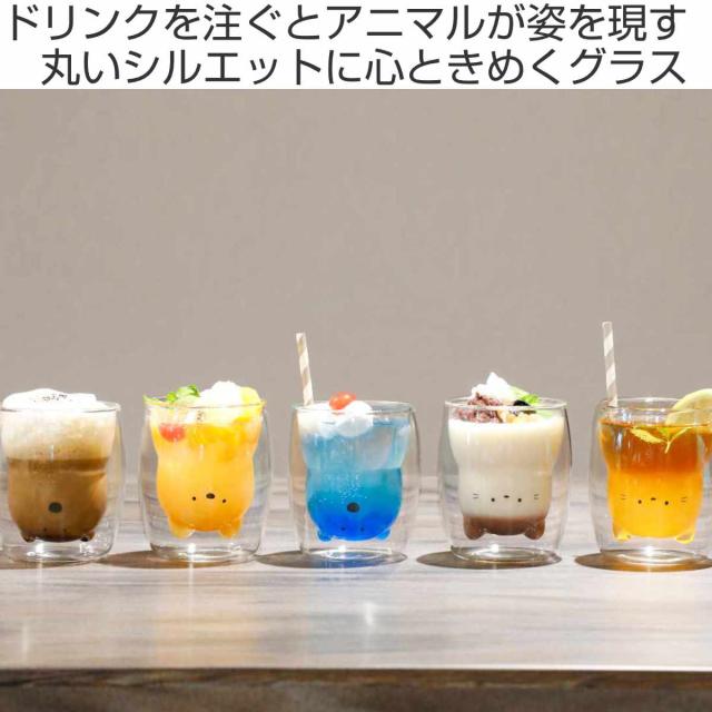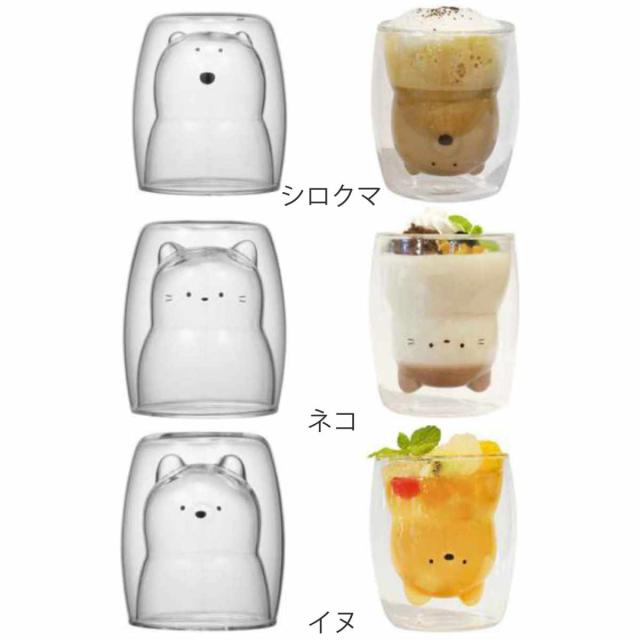 グラス 270ml ダブルウォール 二重構造 アニマル 耐熱ガラス製 ( 電子レンジ対応 食洗機対応 コップ ダブルウォールグラス 動物 耐熱 カップ クマ 猫 ネコ 犬 かわいい 結露 水滴がつかない )