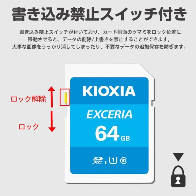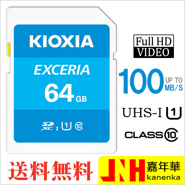 送料無料 SDXCカード 64GB Kioxia EXCERIA UHS-I U1 超高速100MB/S Class10 SDカード キオクシア 海外パッケージ ポイント消化