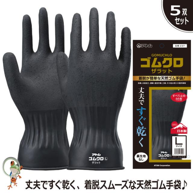 手袋 アトム ゴムクロザラット 237 業務用手袋 特価5双セット 天然ゴム オールコート手袋【漁業/水産加工/農作業/園芸作業/工業/その他水周りの軽作業など】
