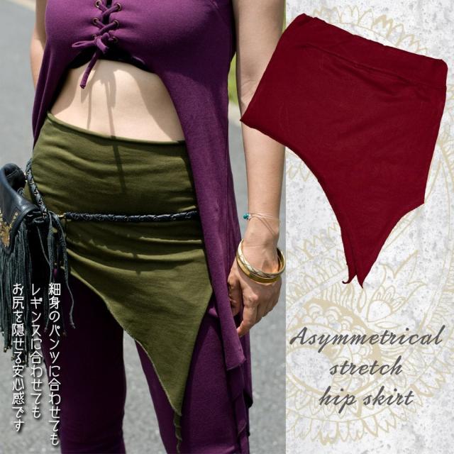 アシンメトリーなストレッチヒップスカート / ヒップスカート、スカート、ライクラ、ストレッチ、トライバル、ダンス、ヨガ、フェス、オールシーズン TIRAKITA(ティラキタ) エスニック衣料 【エスニック・アジアン衣料