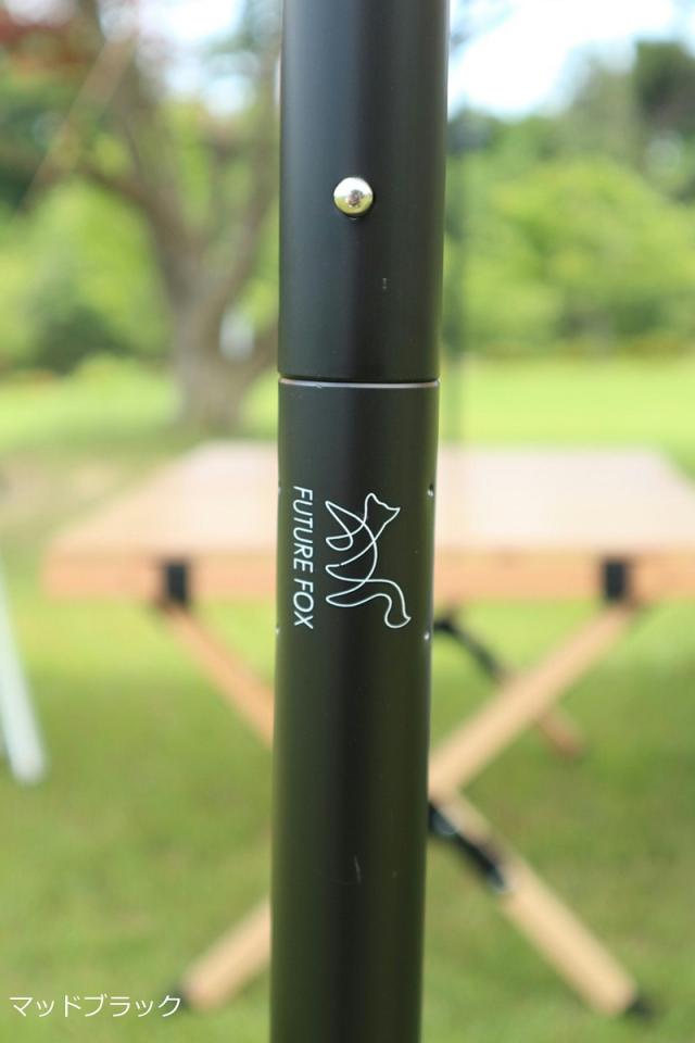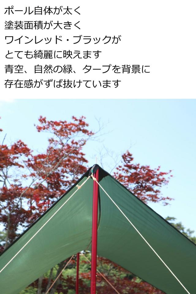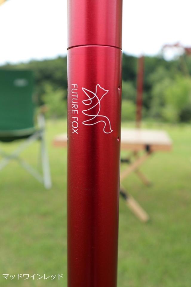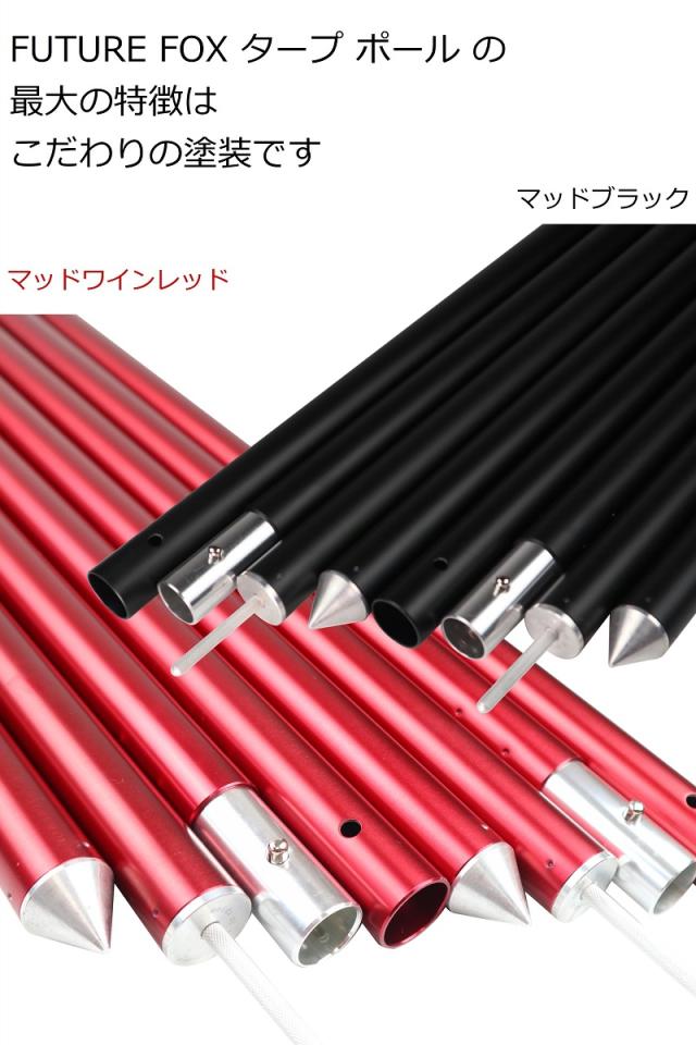 FUTURE FOX タープ ポール の最大の特徴はこだわりのカラーです。現在の テントポール はレッドやブラックがとても人気のカラーになっております。このポールは他のタープポールと一味違う色調にしました。ワインレッドとマットブラック。