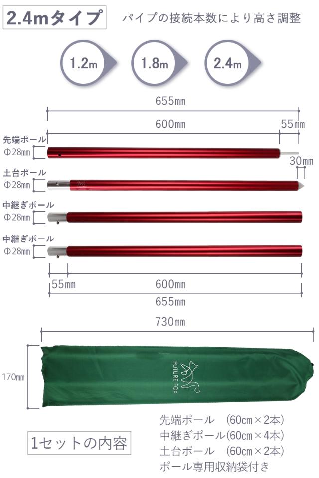 FUTURE FOX ポール テント タープ ウイングタープ用 長さ調整可能 アルミニウム合金 収納袋付 直径28mm 240cm (60cm*4本)×2本分 アウトドア キャンプ 用品 送料無料 1年保証 【南信州発アウトドアブランド】