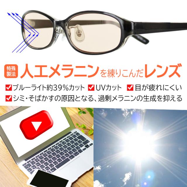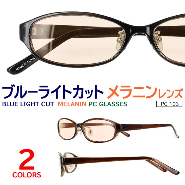 ブルーライトカット メガネ レディース おしゃれ メラニンレンズ PCメガネ パソコンメガネ ブルーライトカット 約39%カット PC103 人工メラニン練り込みレンズ採用 カラーレンズ UVカット 紫外線対策 軽量 カジュアル オーバル クリングス鼻パッド 調整可能