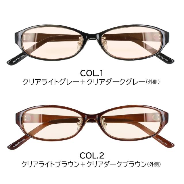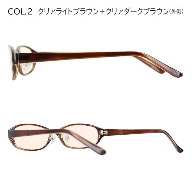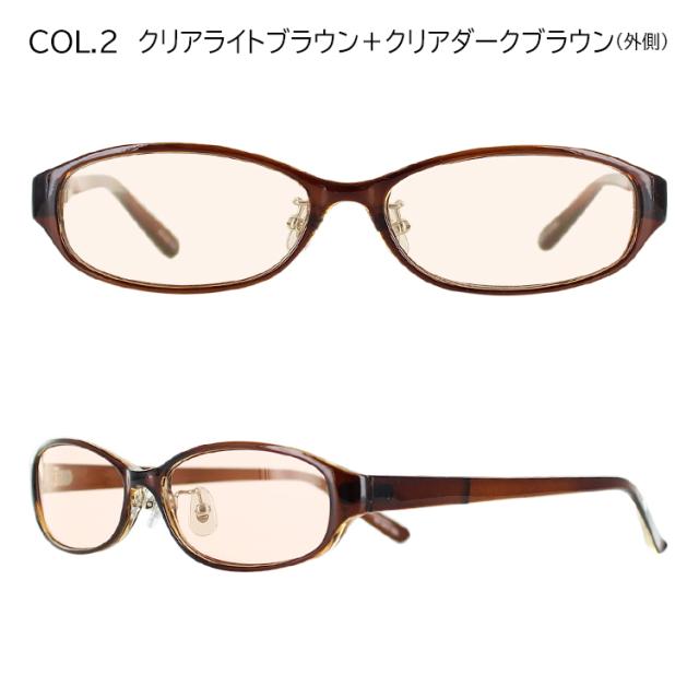| COL.1 クリアライトグレー+クリアダークグレー(外側) COL.2 クリアライトブラウン+クリアダークブラウン(外側) | フレーム:プラスチック テンプル:プラスチック レンズ:プラスチック |