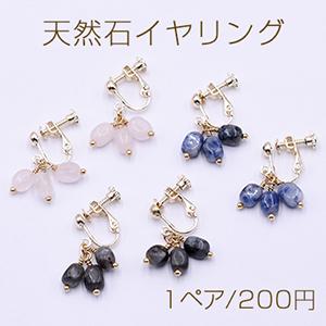 天然石イヤリング 角柱 ネジバネ式イヤリング 4mm玉【1ペア】