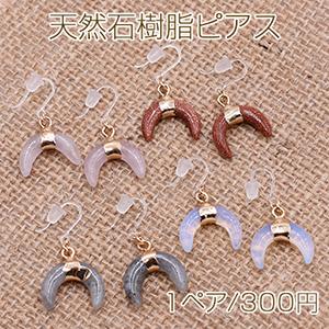 天然石樹脂ピアス 月型 樹脂フックピアス キャッチ付き【1ペア】