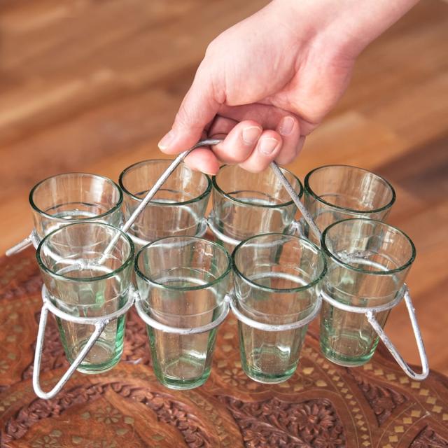 インドやネパールで街を走りまわるチャイの売り子。行く先々で振る舞われるチャイはインドを旅したことのある人なら決して忘れられない存在でしょう。こちらのチャイカップホルダーは、チャイを列車内や駅構内で売って回るチャイワーラーの必需品です。■グラスを8個 同時に運べる