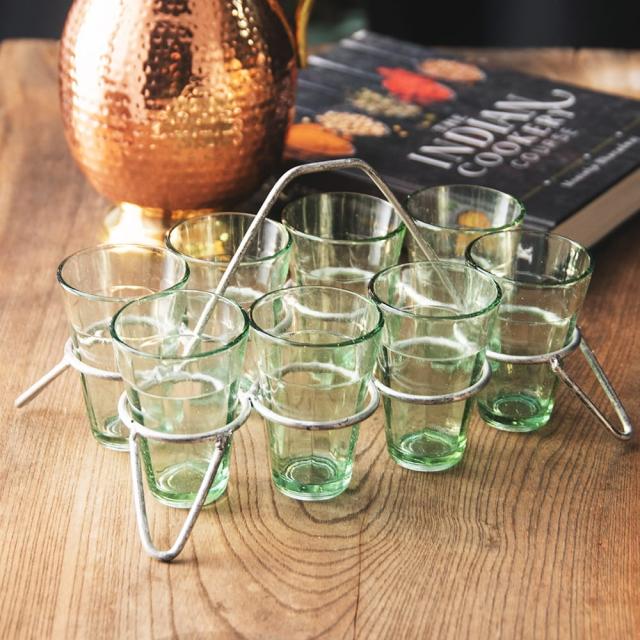 【送料無料】 【チャイカップ8個付きセット】チャイワーラーのチャイカップホルダー 8カップ用 / インド チャイダーン グラス ラッシー マグカップ コーヒー アジアン食品 エスニック食材