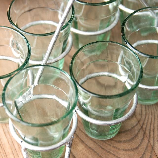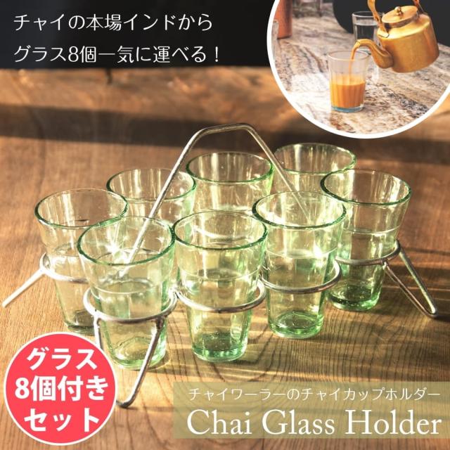 こちらの商品は、チャイカップホルダーに似合う、インドのガラスチャイカップが8個付きの、お得なセット商品です。単品でご購入いただくよりも、お得なお値段になっています。■チャイワーラーの必須アイテム