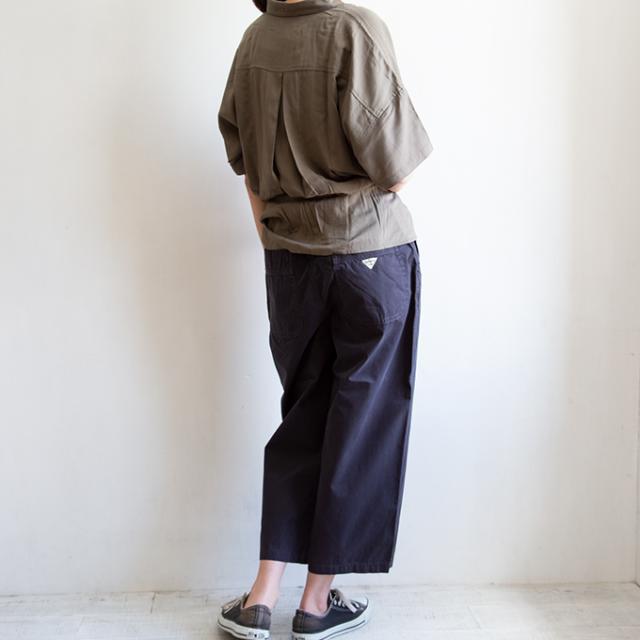 高密度な平織素材で独特なハリ感のあるワイドパンツ。