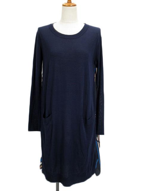【中古】アツロウタヤマ ATSURO TAYAMA ワンピース ニット シフォン 長袖 36 紺 ネイビー レディース