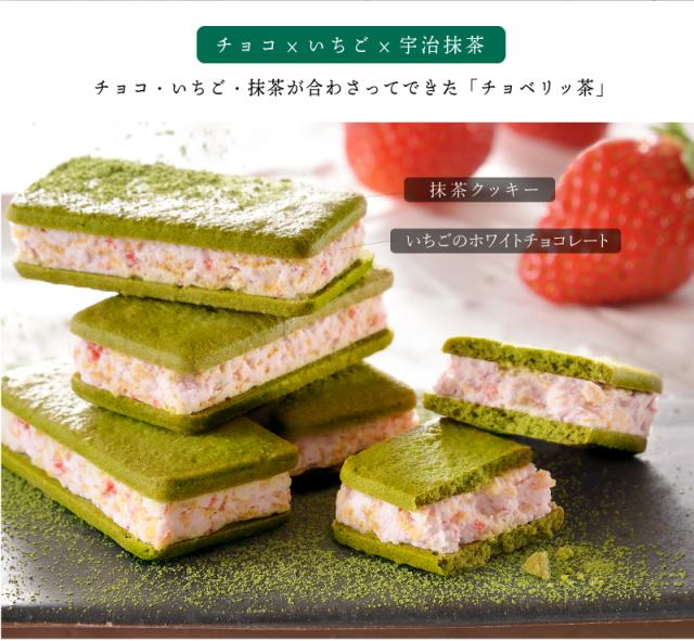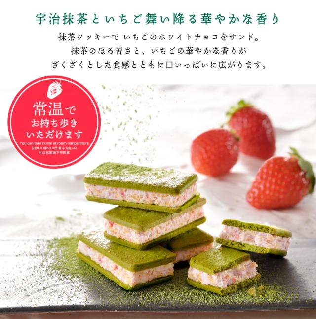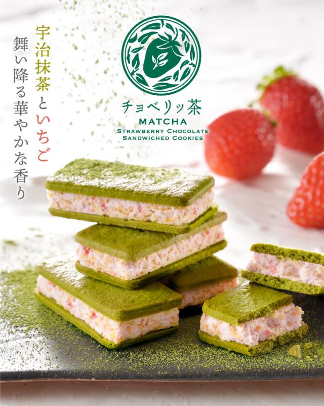抹茶クッキーでいちごのホワイトチョコをサンド。
