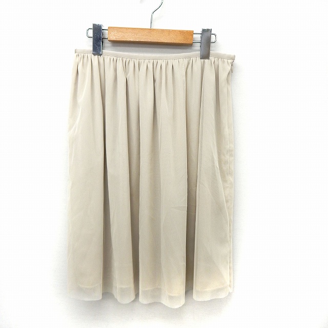 【中古】ビームスライツ BEAMS Lights スカート フレア ギャザー チュール 膝丈 サイドジップ シンプル 38 ベージュ