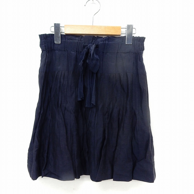 【中古】マカフィー MACPHEE トゥモローランド スカート フレア ミニ ギャザー ウエストリボン シンプル 34 ネイビー