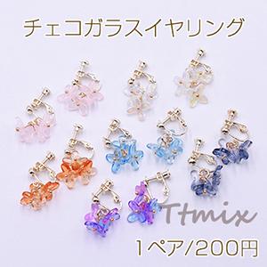 チェコガラスイヤリング ネジバネ式イヤリング 4mm玉 3輪 花びら【1ペア】