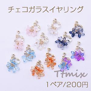 チェコガラスイヤリング ネジバネ式イヤリング 3mm石付 3輪 花びら【1ペア】