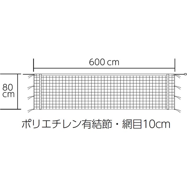 幅80cm、長さ600cm、ポリエチレン無結節、網目10cm