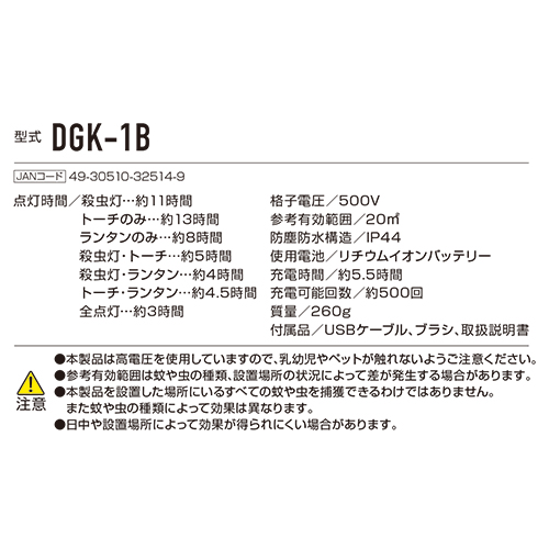 【ハタヤ 充電式殺虫器 電撃!ちょこっと DGK-1Bの商品詳細】