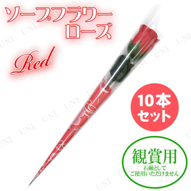 [10本セット] 観賞用ソープフラワー ローズ 一輪 レッド 観賞用フラワー パーティーグッズ 装飾品 ウェディングパーティー用品 ブーケ 全般 香り付き ラッピング済み