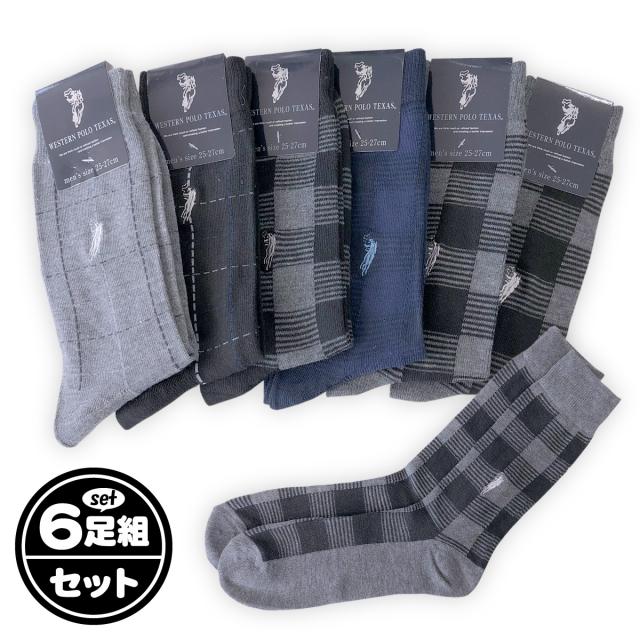 【送料無料】6足組セット メンズ 紳士 チェック柄 クルー丈 カジュアル ソックス 靴下 25-27cm sp-0081【メール便対応】
