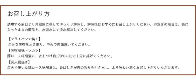 西京味噌:豚ロース肉(山口県産)、味噌漬用調味料(味噌、(砂糖、米発酵調味料、その他))/増粘剤(加工でん粉)