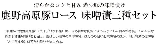 鹿野高原豚ロース 味噌漬三種セット 【送料無料】鹿野ファーム お中元 ギフト 産直 御歳暮ギフト