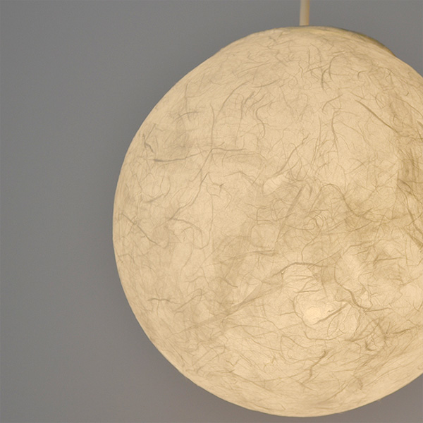![]() 直径34×高さ32cm 1灯 ※画像は同シリーズのサイズ違いを使用しています。 ![]() ![]() お月様のようなやさしい灯り まるでお部屋にお月様が浮かんだようなペンダントライトです。和紙を固めてシェードにしているため、分厚くぼんやりとしたやさしい灯りが印象的です。和紙を通して伝わるやわらかな灯りは、空間に明るさだけでなく癒しも与えてくれます。和モダンな雰囲気で、ご家庭だけでなく店舗照明にもおすすめです。 ![]()