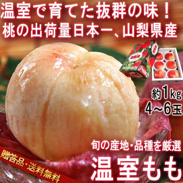 温室 桃 約1kg 4〜6玉 山梨県産 贈答品 化粧箱入り 味わい抜群のプレミアムギフト!美しい果実にジューシーな食感