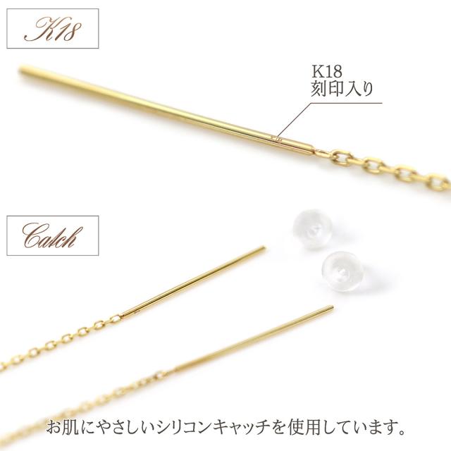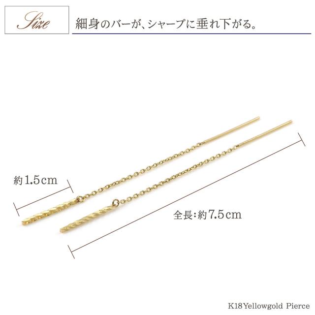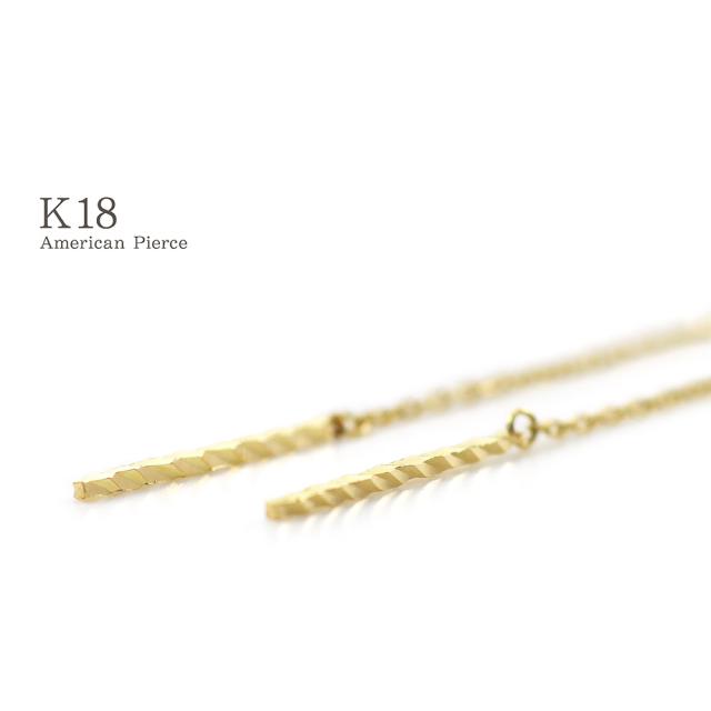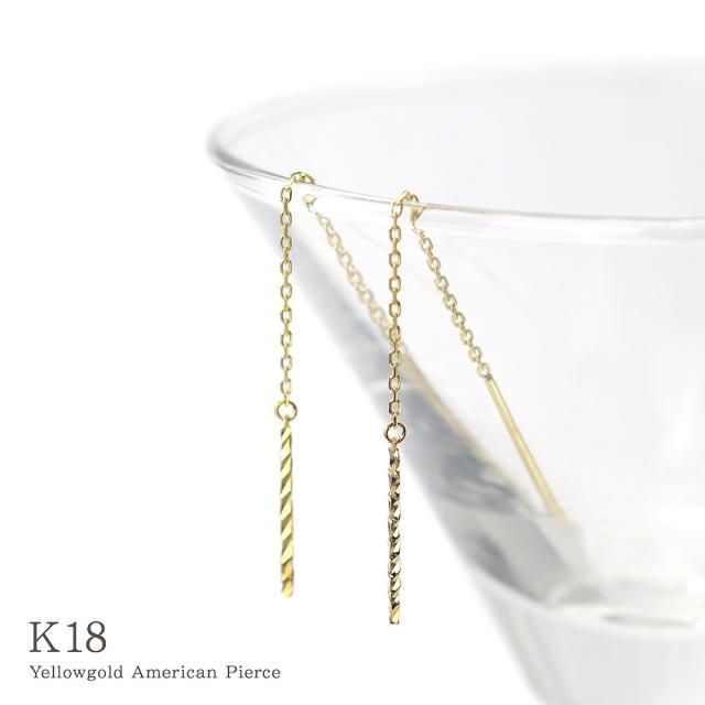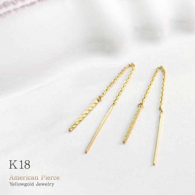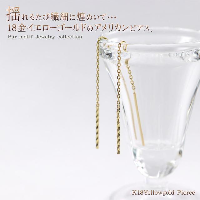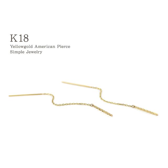 アメリカンピアス チェーンピアス 18金 レディース シンプル K18 18K イエローゴールド 華奢 バー 棒 揺れる ロング プレゼント 長い 長め ピアス ストレート ジュエリー アクセサリー 母の日 ギフト 2026 記念日 誕生日 お祝い ギフト 贈り物 女性 彼女 妻 嫁 娘 コンサバ