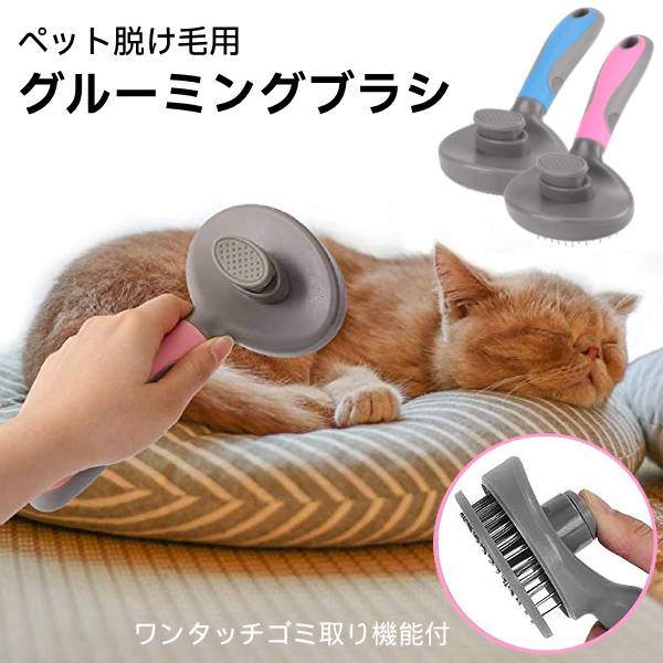 ペット用品 ペットブラシ グルーミング 脱け毛 長毛 短毛 スリッカーブラシ ムダ毛取り ワンタッチ ステンレス 犬 猫 ウサギ マッサージ トリミング お手入れ簡単