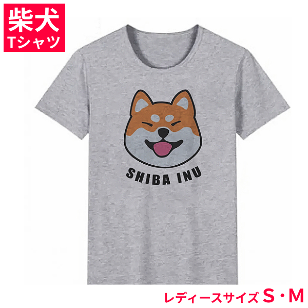 【在庫のみ】女性用 レディース 半袖 グレー Tシャツ 柴犬 丸首 ラウンドネック しば犬 ルームウェア 部屋着 アニマル 動物 カジュアル ファッション 夏物 服 薄手 灰色 可愛い