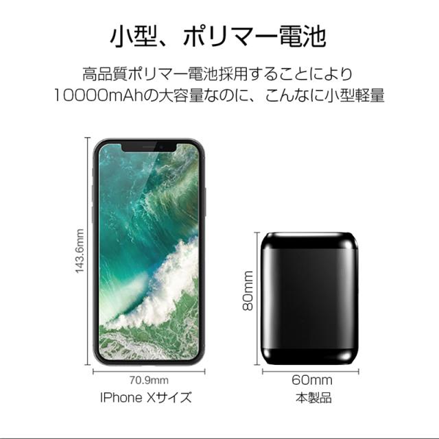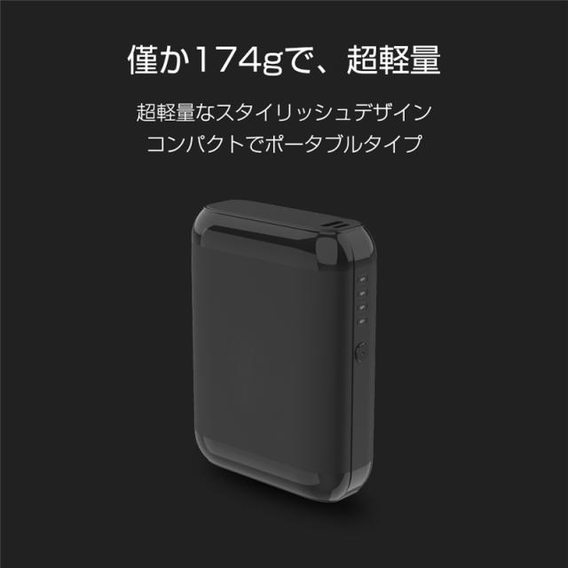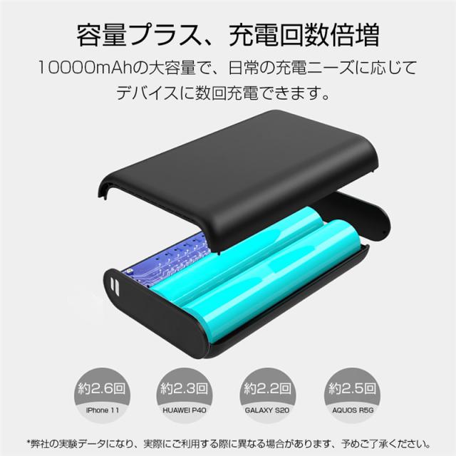 【大容量&コンパクト】10000mAhの大容量でiPhone Xに約2.6回、HUAWEI P10に約2.3回、Galaxy S8に約2.6回充電が可能です。手のひらに収まれてポケットにも収まるほどコンパクト、卵3つ分ほどの重さしかありません。出張、旅行やキャンプなど電源の取りにくい所でも、スマホの電源切れへの心配を要りません。