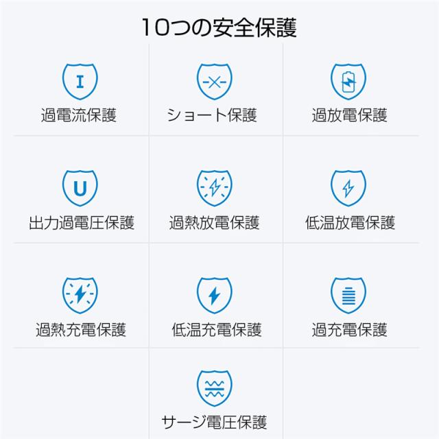 【安全保護機能】最先端なMCUチップを採用することにより、過充電保護、過電圧保護、過電流保護、過放電保護、ショート保護などの多重安全保護が付きます。安全に充電出来て、デバイスバッテリーの使用寿命も延長します。高品質なリチウムポリマーセルを採用し、繰り返し使用が可能です。