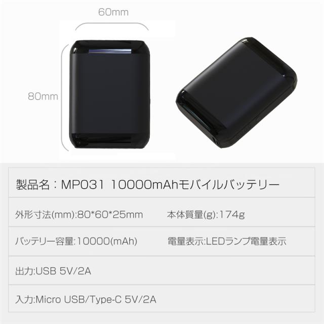 モバイルバッテリー 10000mAh 大容量 Type-C/Micro-USB入力端子 防災電源 小型 軽量 持ち運び便利 急速充電 iPhone17/16/15充電 コンパクト PSE認証済 【PL保険加入済み製品・安心】